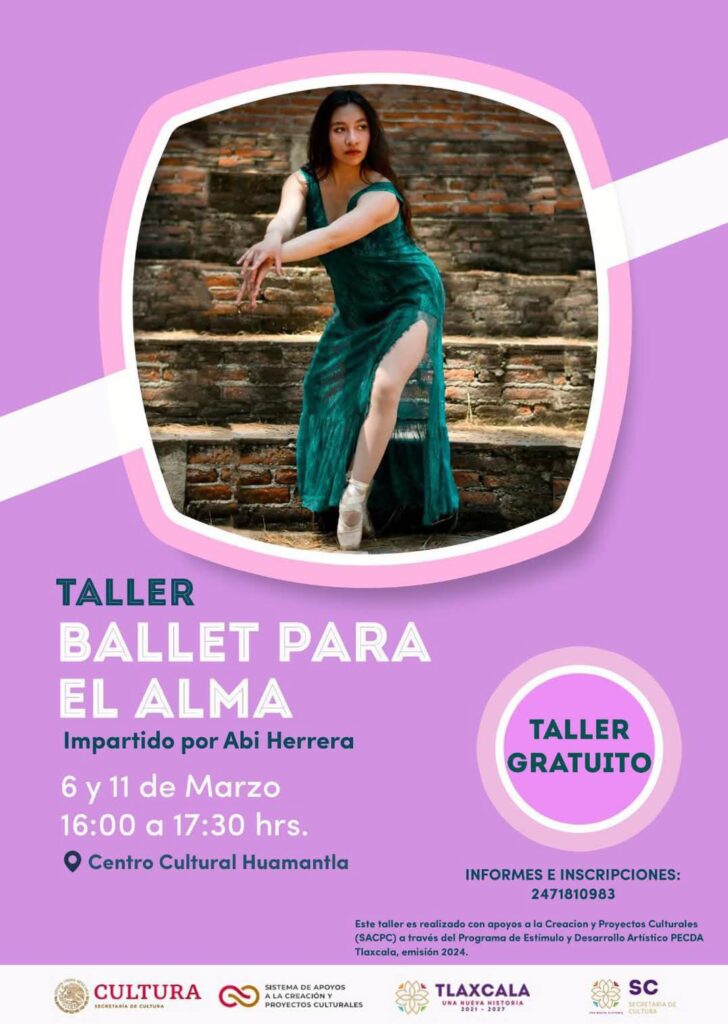 El Centro Cultural Huamantla, hace extensa la invitación a la ciudadanía que desee participar en el taller gratuito “Ballet para el Alma”, que se llevará a cabo los días 6 y 11 de Marzo, en un horario de cuatro a cinco treinta de la tarde. Este taller, será impartido en las Instalaciones del Centro Cultural […]