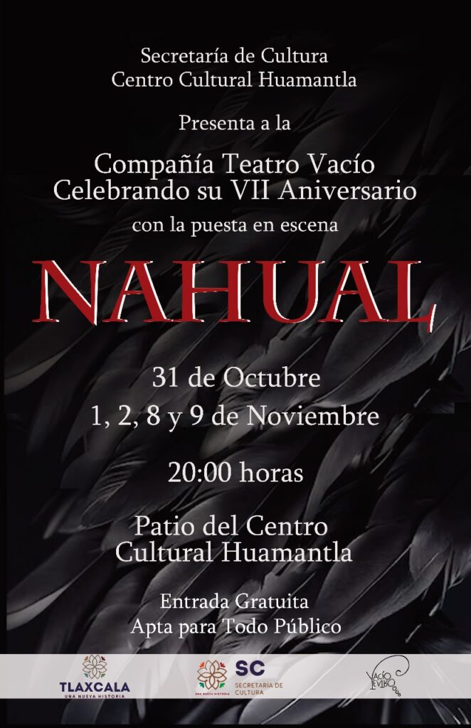 Hoy jueves 31 de octubre, mañana 1 de noviembre, así como los días 2, 9 y 9 de noviembre, se llevará a cabo la presentación de la Compañía de Teatro Vacío, con la puesta en escena “Nahual”. Estas presentaciones se llevarán a cabo, en el Patio del Centro Cultural Huamantla, a las ocho de la […]
