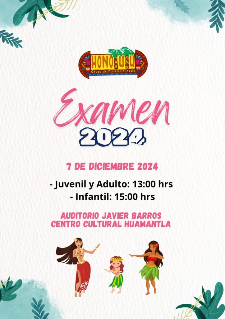Este sábado siete de diciembre del año en curso, en Grupo de Danza Polinesia del Centro Cultural Huamantla, llevará a cabo una clase magistral, dirigida para alumnas de noveles intermedio y avanzado, la cual servirá también de evaluación de talentos. Esta clase, tendrá lugar en el Auditorio Javier Barros Balero del Centro Cultural Huamantla, dentro […]